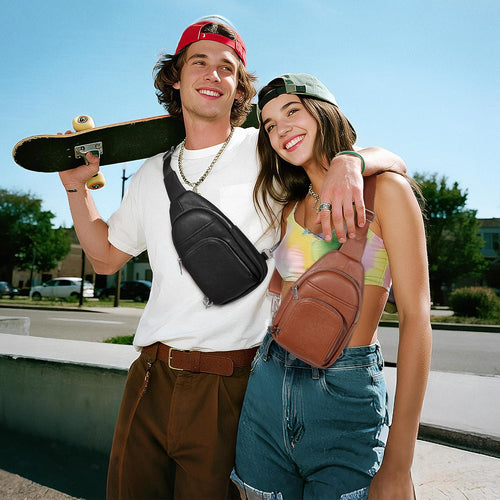 Genuine Leather Small Crossbody Sling Bags for Women Anti-Theft Fanny Packs Chest Bags Purse with Built in RFID Wallet